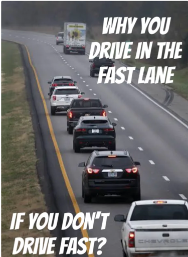 I’m not saying I do it, You numpty. I’m saying it’s a stupid rule. Because it fails instantly it’s not a passing lane scenario.