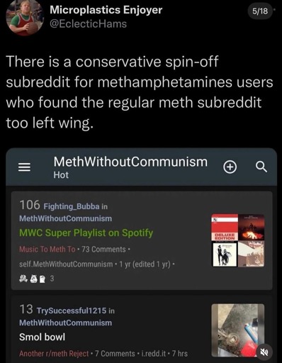 arrow-up1201arrow-down1imageIt says a lot when even the meth users don’t want the right around.lemmy.worldMTZ@lemmy.world to Lemmy Shitpost@lemmy.world · 16 hours agomessage-square10linkfedilink